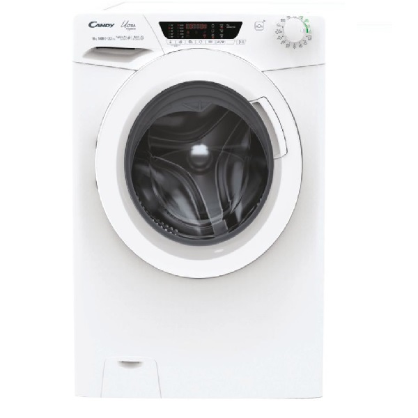 Lavatrice Candy 10 kg, carica frontale, libera installazione, classe A, 1400 giri/min, 16 programmi, cicli rapidi, partenza ritardata, dimensioni 60x58x85 cm, colore bianco.