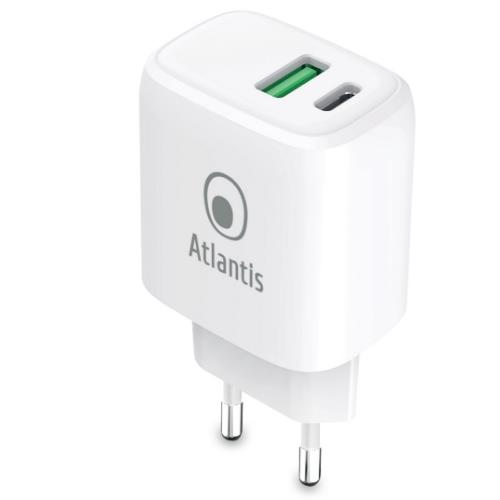 Alimentatore Atlantis Universale Per Smartphone e Tablet P008-PD20GN-2U ac 20W Output 1xUSB 1xUSB-C pd Tecnologia Gan