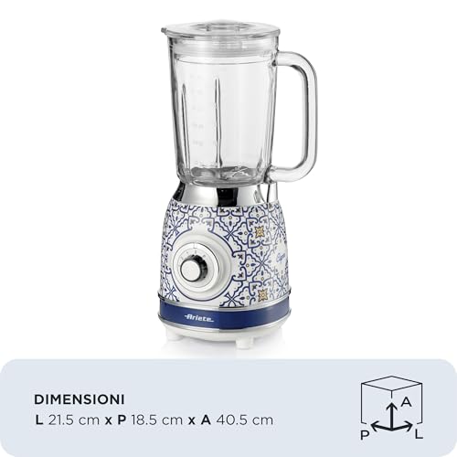 Ariete 583 Frullatore Capri con tazza in vetro da 1,5 Litri, 4 Lame in Acciaio Inox, 4 Velocità + Pulse,1000 Watt, Capri Blu Vetro