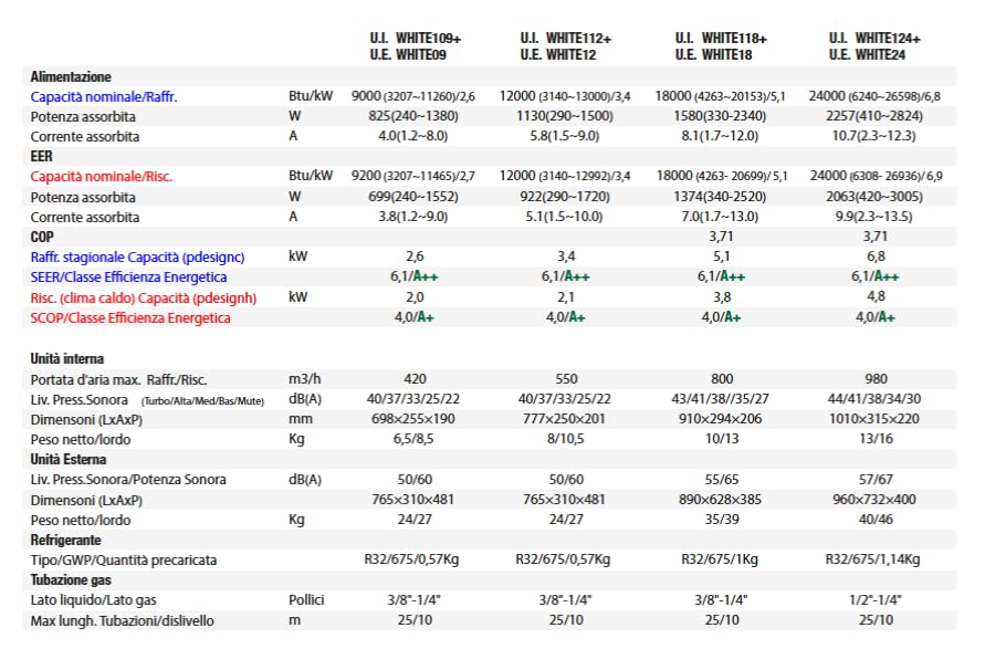 Climatizzatore serie white 4XE parete UNITA' INTERNA + ESTERNA (12000 Btu)