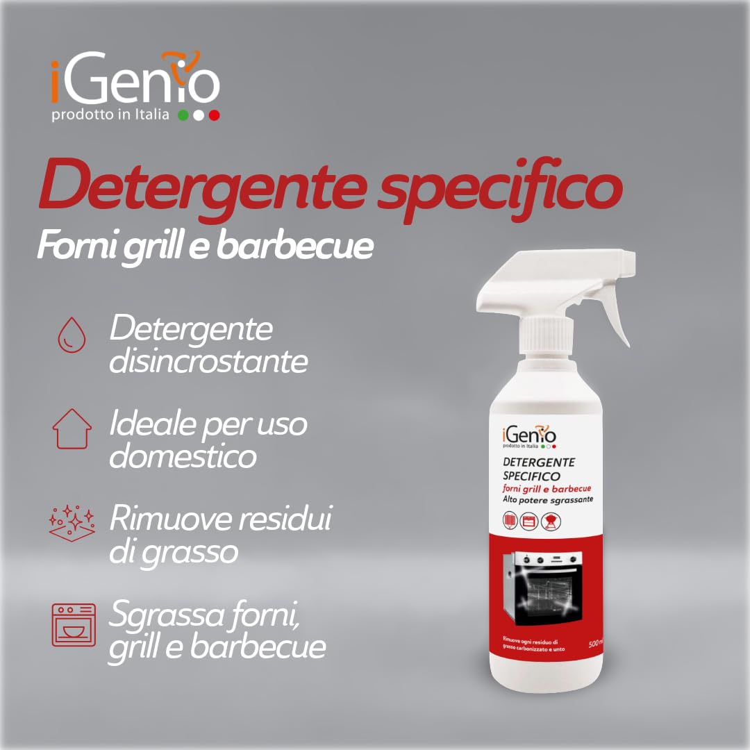 Detergente professionale forni grill e barbecue, 500 ml, art. 995 - iGenio — Language: italian, Bullet Point: Formato conveniente: Confezione da 500 ml per un utilizzo pratico e duraturo, Hazmat: SODIUM HYDROXIDE SOLUTION, Item Package Quantity: 1. Spedizione gratuita.