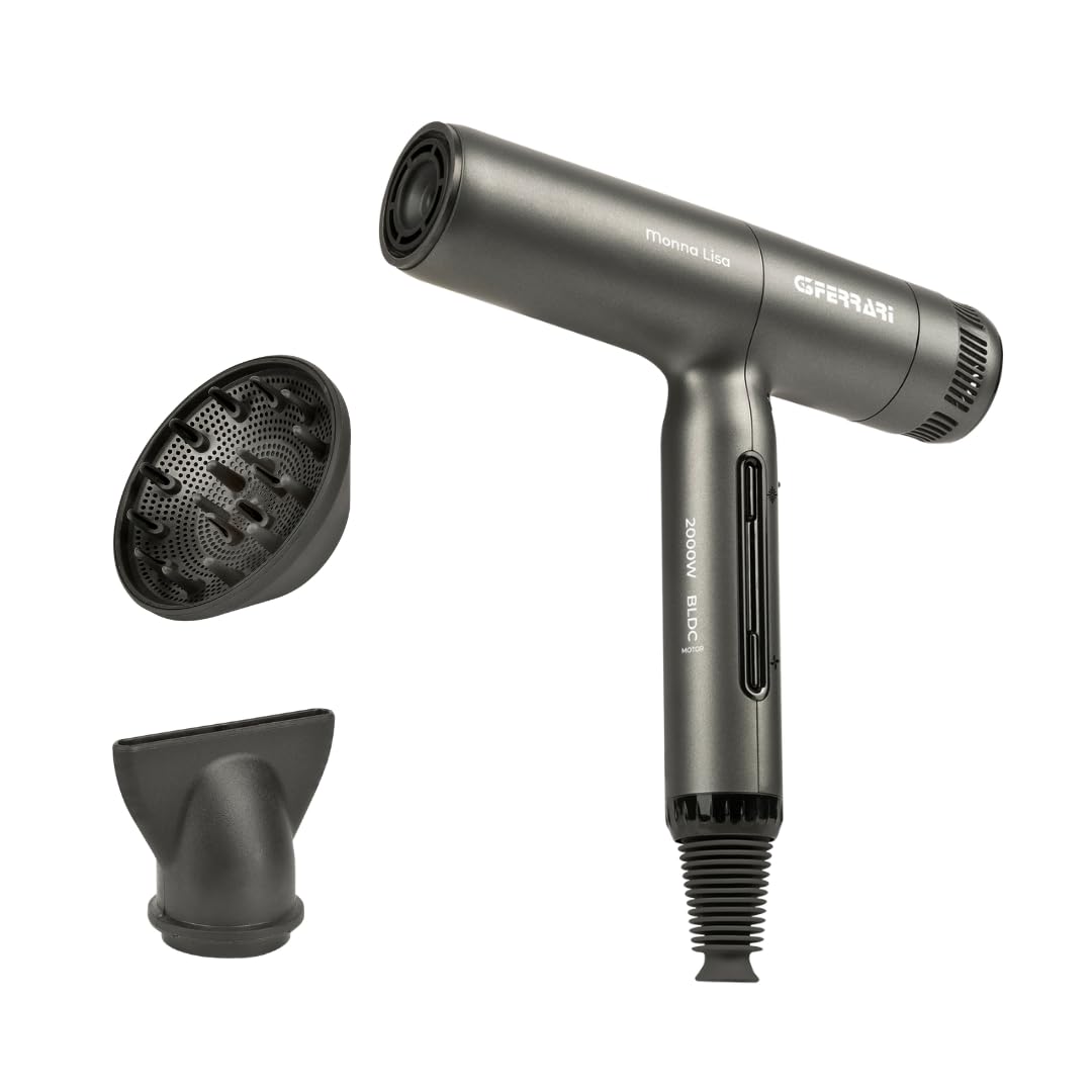 G3 Ferrari G30067 Monna Lisa Asciugacapelli Brushless Professionale, 2000 W, 3 Velocità, 5 Temperature, Funzione Ioni, Diffusore, Grigio