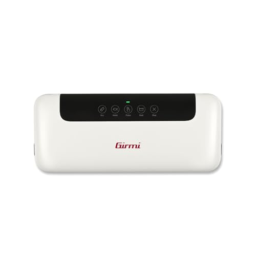 Girmi VT52 Macchina per Sottovuoto, 100 W, Barra Saldante da 4 mm, Sigillatrice da sottovuoto da 70 kPa, Pannello Soft-Touch, Funzionamento Automatico, Incluse 5 Buste da 20x30 cm, Bianco — Dsa Responsible Party Address: assistenzatecnica@trevidea.it, Power Plug Type: type_cef_2pin_eu, Item Weight: