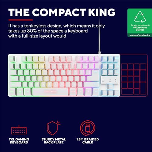 GXTrust 833W Thado Tastiera Gaming TKL Layout Italiano QWERTY, Design Compatto più Piccolo del 20%, Anti-Ghosting, 69% Plastica Riciclata, LED Keyboard USB per PC/Laptop - Bianco