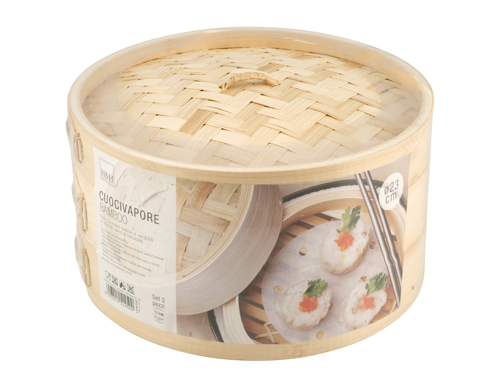 H&H cuocivapore, cestello per Cottura a Vapore, 2 Livelli, con Coperchio, bambù, 23 cm — Number Of Flutes: 4, Language: italian, Item Weight: 1.07, Number Of Pieces: 3. Spedizione gratuita.