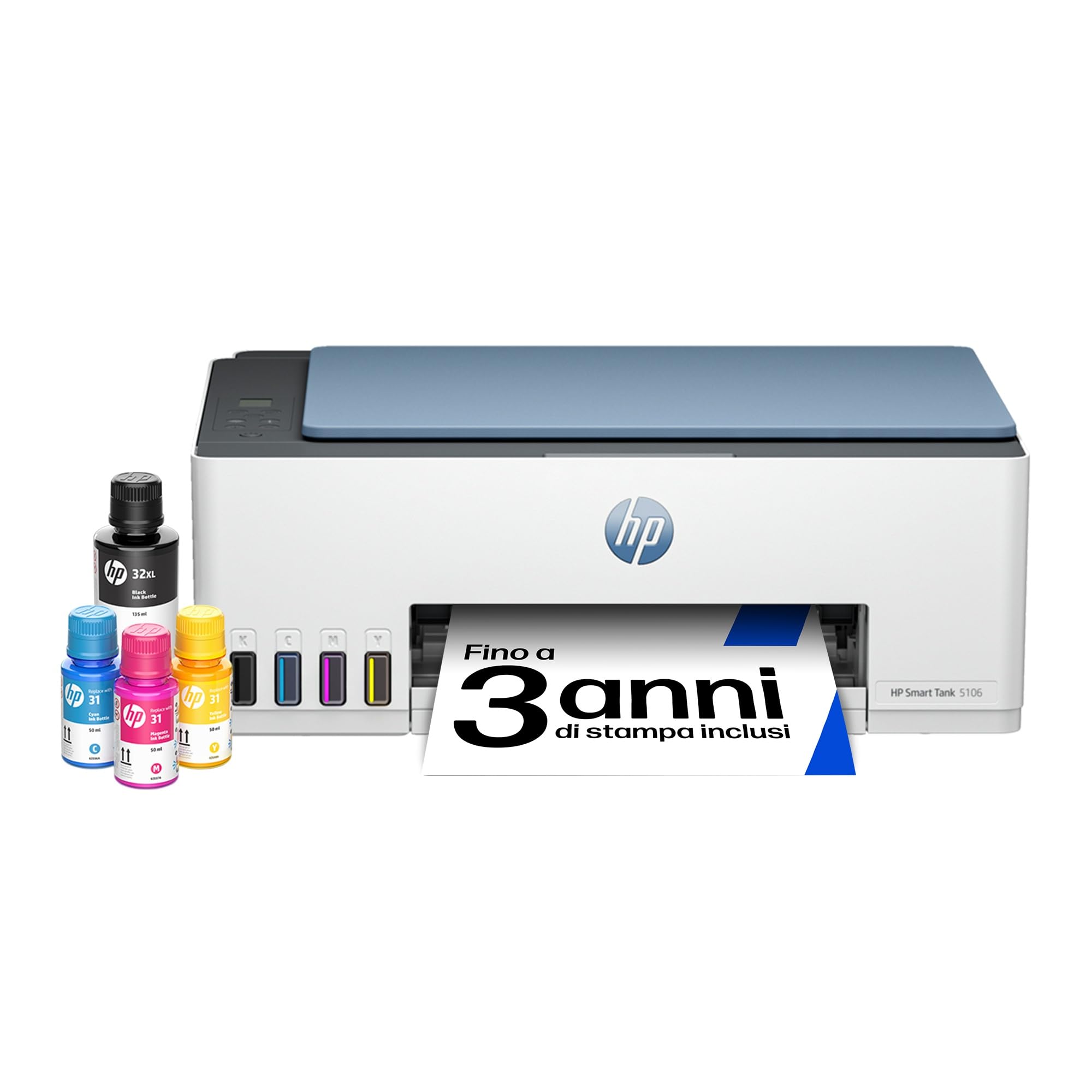 HP Stampante Multifunzione Smart Tank 5106 — Max Copy Resolution Color: 600 dpi, Processor Count: 1, Max Print Resolution Black White: 600 dpi, Power Plug Type: no_plug. Spedizione gratuita.