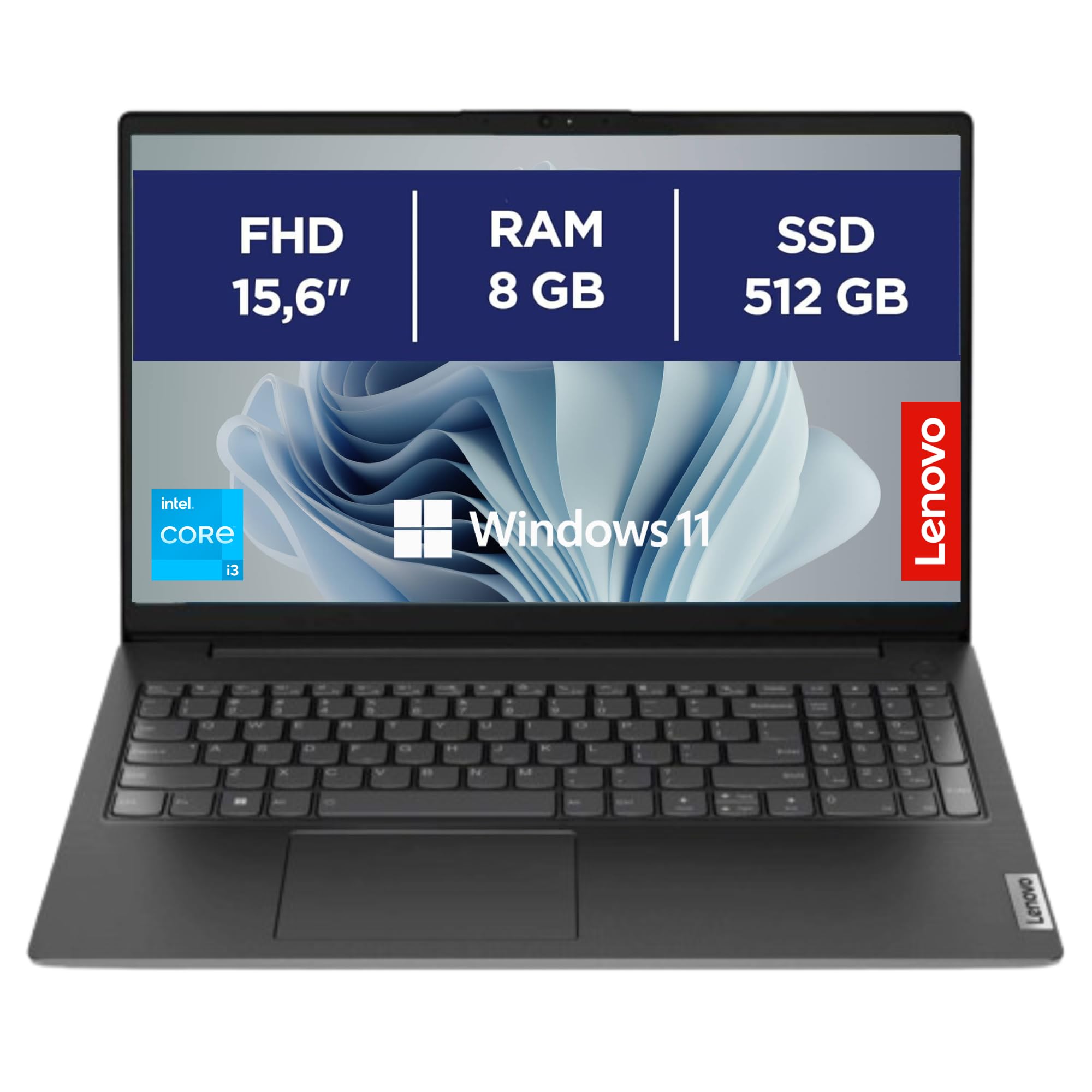 Lenovo, Notebook Pc Portatile, Display 15,6" Full HD, Intel i3-1315U 6 Core 3.3 Ghz, Ram 8 GB DDR4, 512 GB SSD NVMe, Win 11 Pro