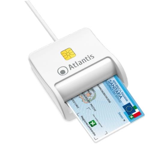 Lettore Atlantis P005-SMARTCR-U Smart Card Reader Per Cns/crs/ts Firma Digitale Fascicolo Sanit. Siti Gov. USB Cavo 120cm Bianco