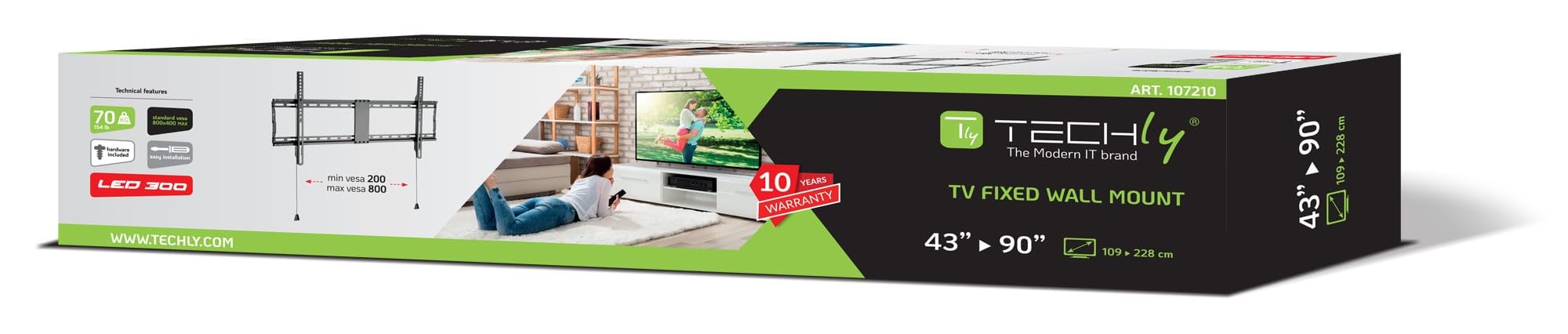 1/6Techly 107210 Staffa a Muro Fissa TV LED LCD 43-90" Nero — Item Weight: 2.38, Bullet Point: ✅ Supporto universale da parete per TV LED/LCD, pieghevole, Item Package Quantity: 1, Unspsc Code: 45111802. Spedizione gratuita.
